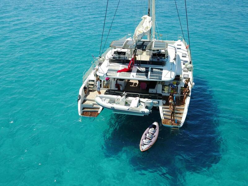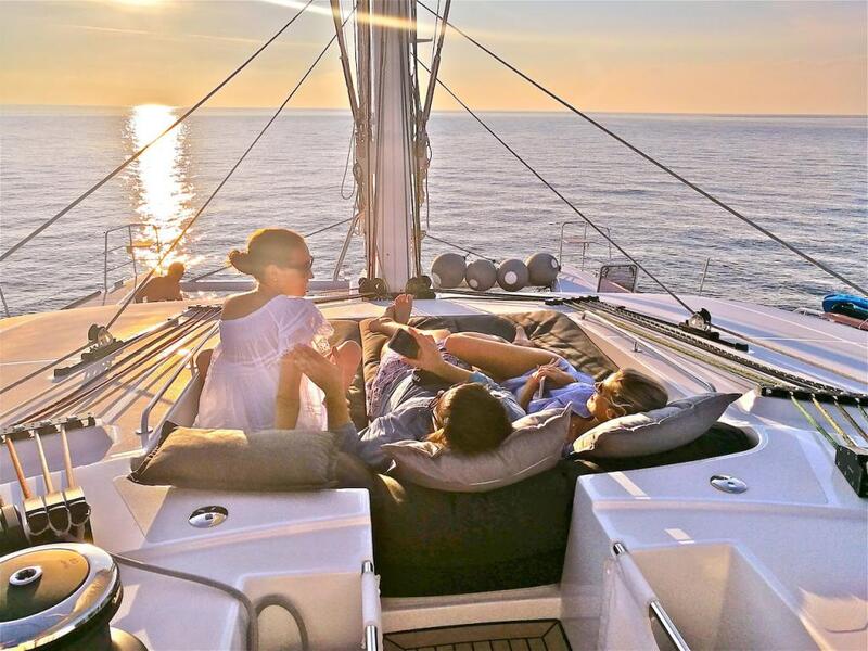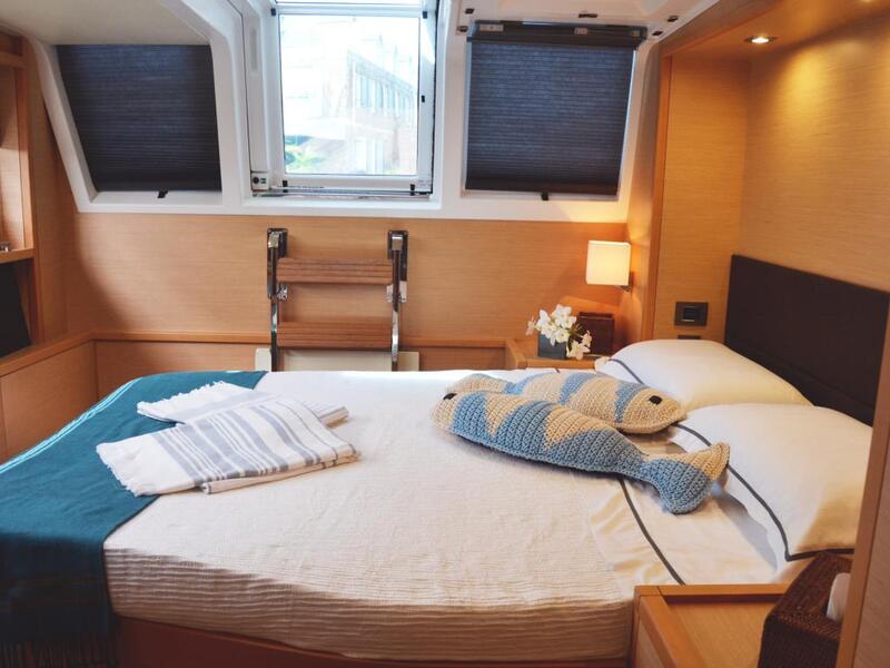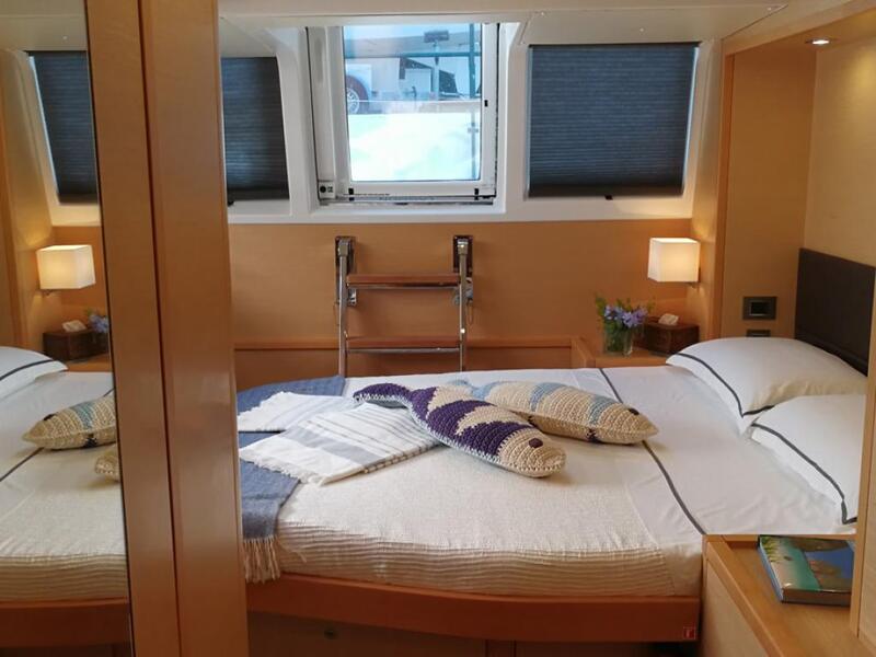 Kaskazi Four is a well-known Lagoon 620, pretty new, launched in May 2016. Nevertheless, compared to twin yachts, she is very innovative: metal grey painted hull, interiors with five double guest cabins, each one with ensuite toilet and shower, galley downstairs which allows to have a huge wide saloon upstair.Two cabins in the starboard hull can be also converted into a unique suite.Air conditioning, watermaker, generator, solar panels and aeolic gens, every kind of water Toys. Nothing’s missing on Kaskazi, including a professional wine cellar.But, mainly, Kaskazi is run by the Captain Francesco Rinauro and his crew who know by heart and better than anybody else the summer preferred sailing area where they have always been living and operating: the south west coast of Italy, Sicily, Aeolian islands, Ponza archipelago, capri, Ischia, Procida.Diving, fishing, archeological paths, the impressive beauty of active volcanoes, the Italian history and culture and… one of the most beautiful sea worldwide.OptionsAir conditioning, watermaker 280 l/h, generator 17kw, 20 solar pannels, 2Inverter, fan in each cabin, wine cellar, ice maker in the cockpit, children net protection.