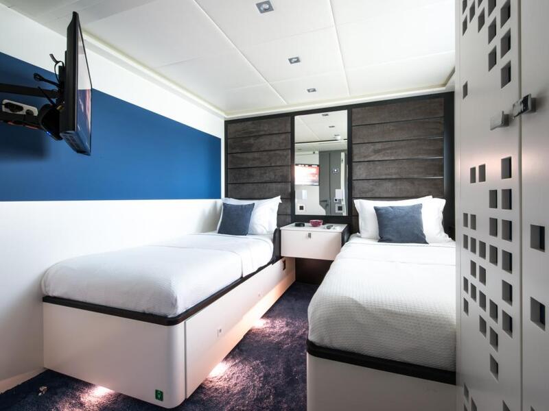 SERENITAS accommodates up to 10 guests in 5 staterooms, consisting of a full width owner's stateroom on main deck and two almost identical VIP cabins, one spacious double cabin and one twin cabin on the lower deck. All cabins feature en suite facilities.