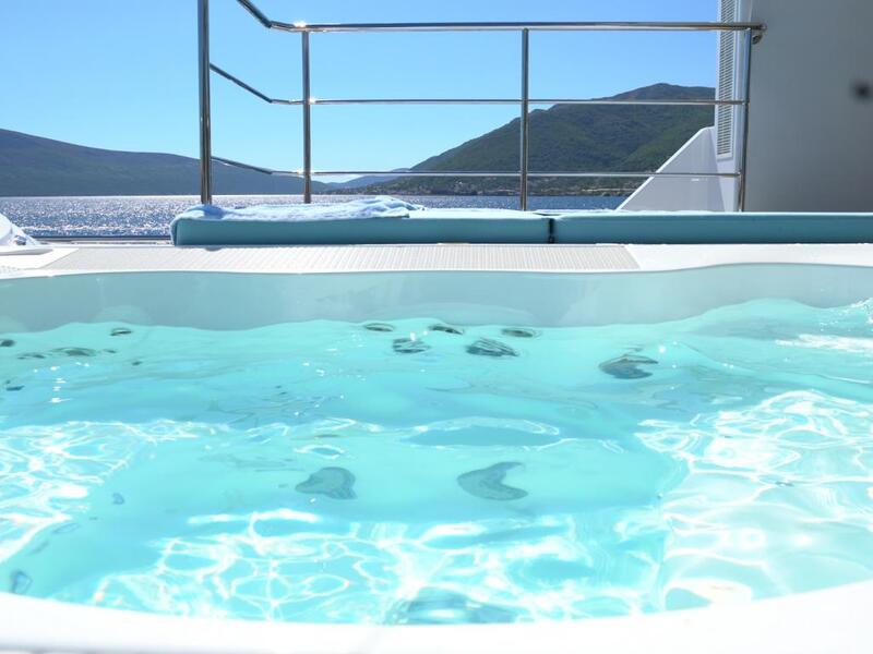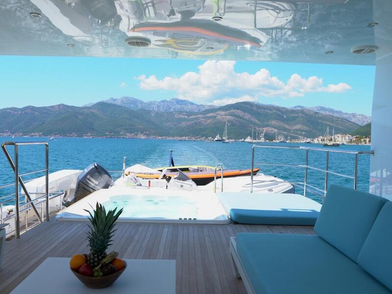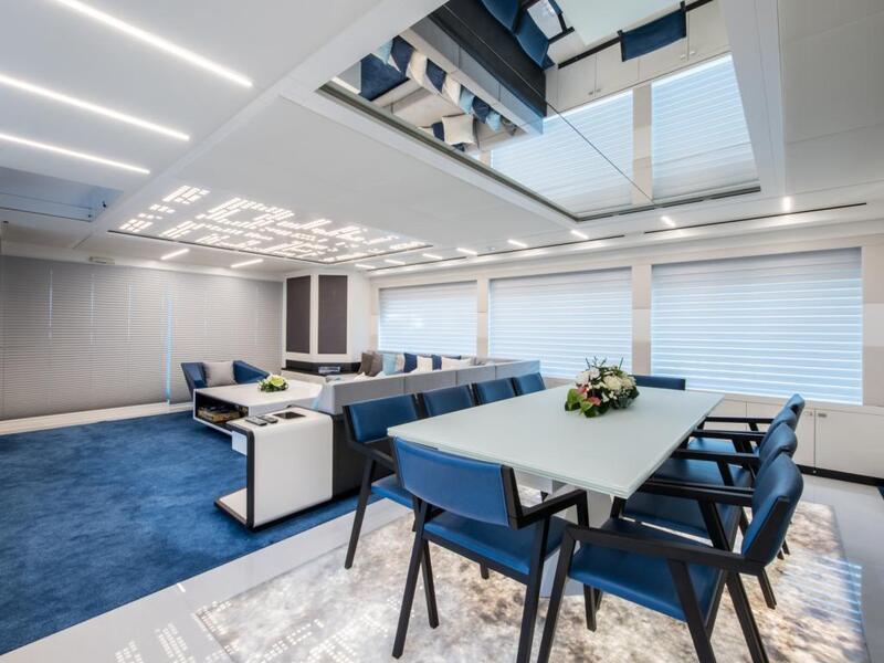 Her ample deck space offers several gathering areas, including a seating area on the upper and main deck aft, sunbathing areas on the upper deck aft and forward, as well as a dining area for 10 on the main deck.
